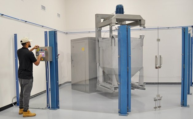 使用IBC的厂商则不需要等待料仓排空。一旦混合完成,料仓马上被移动到装袋区域,而下一批次的原料开始进行混合。